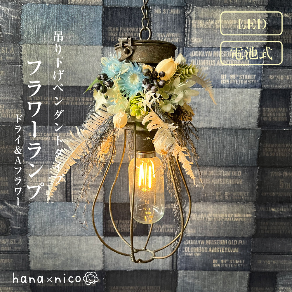 吊り下げランプ アンティーク調 照明 ペンダントライト LED 間接照明 おしゃれ コードレス ドライフラワー フラワーランプ インテリアライト テールリード