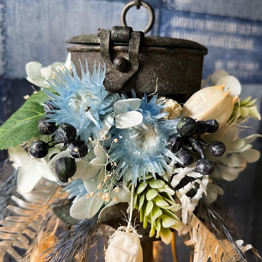点灯時は優しい光がお部屋を照らし、ドライフラワーが繊細で美しい陰影を生み出します。