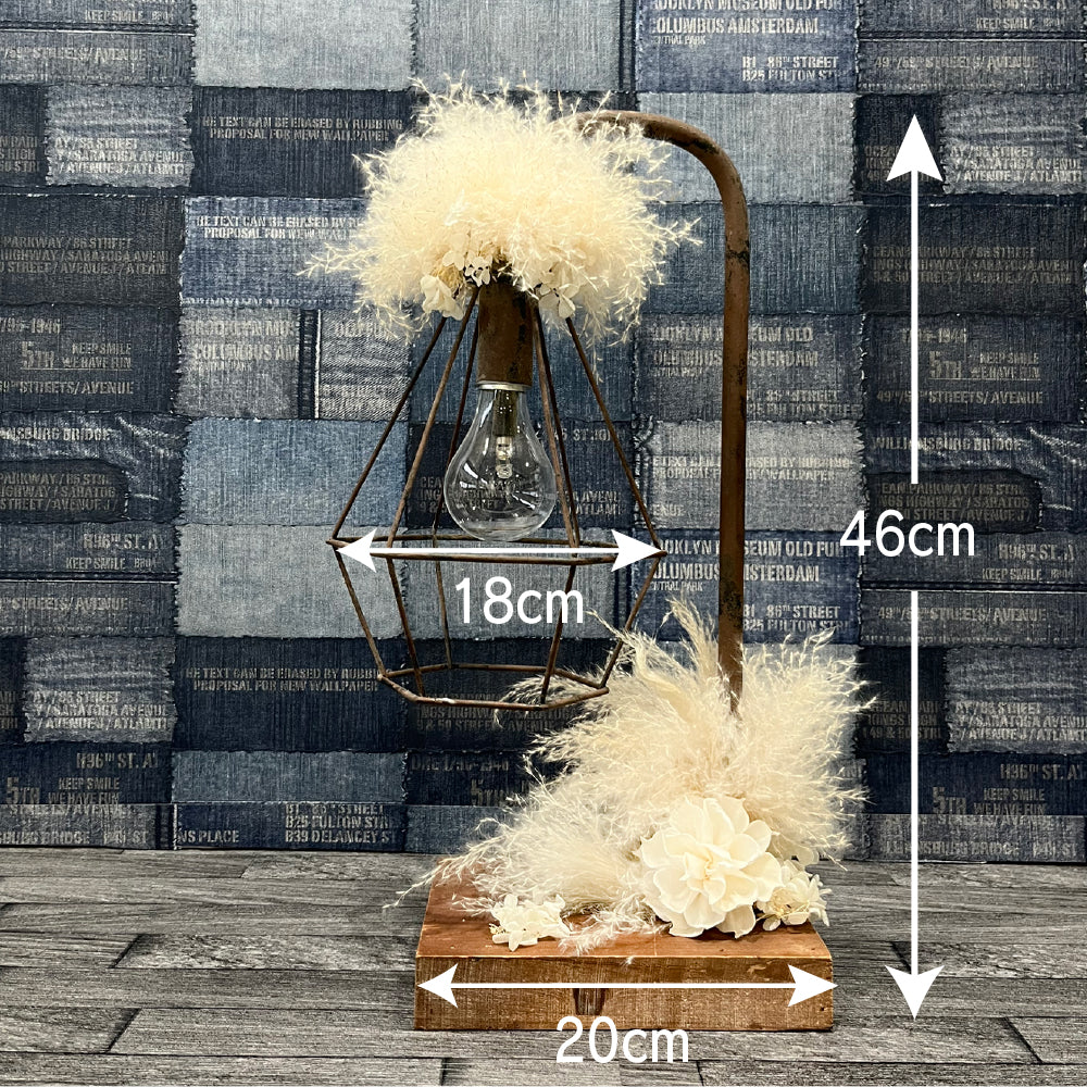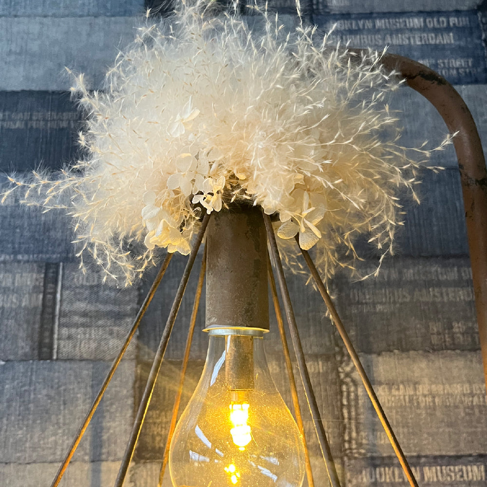 ふわふわのドライフラワーがおしゃれでユニークなテーブルランプです。