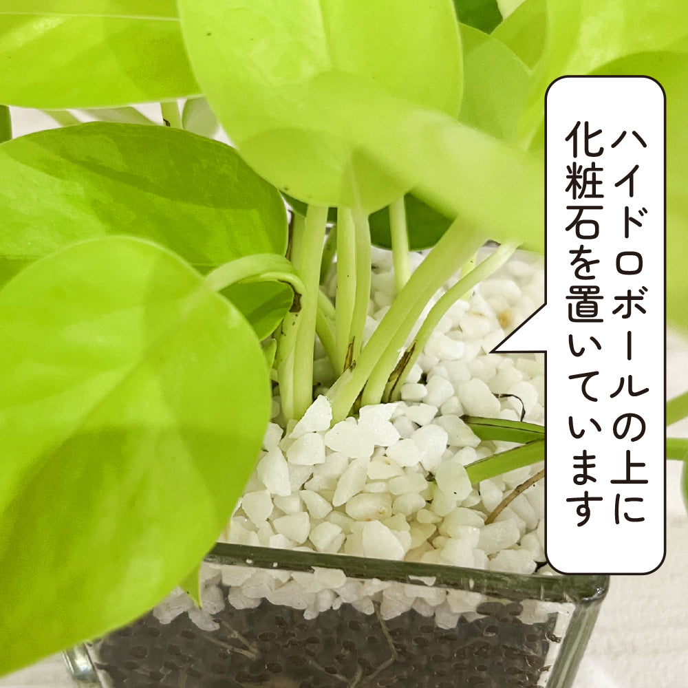 ハイドロカルチャー 観葉植物 ポトス ライム 土を使わないから清潔 ライムグリーン葉色がとてもきれい! おしゃれなガラス器