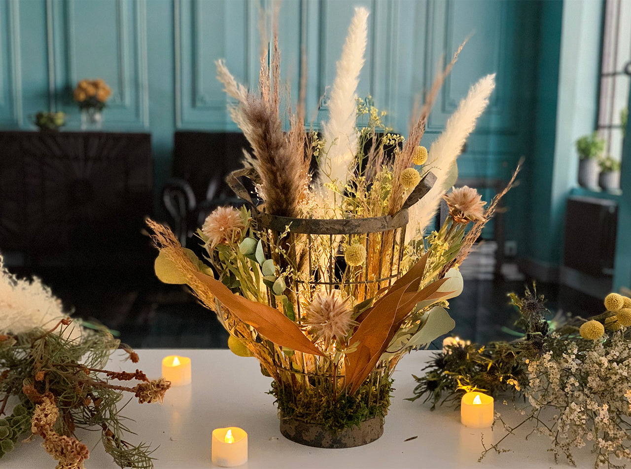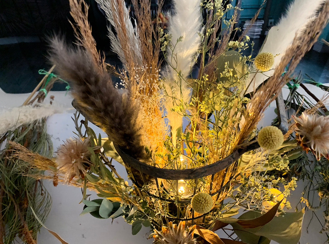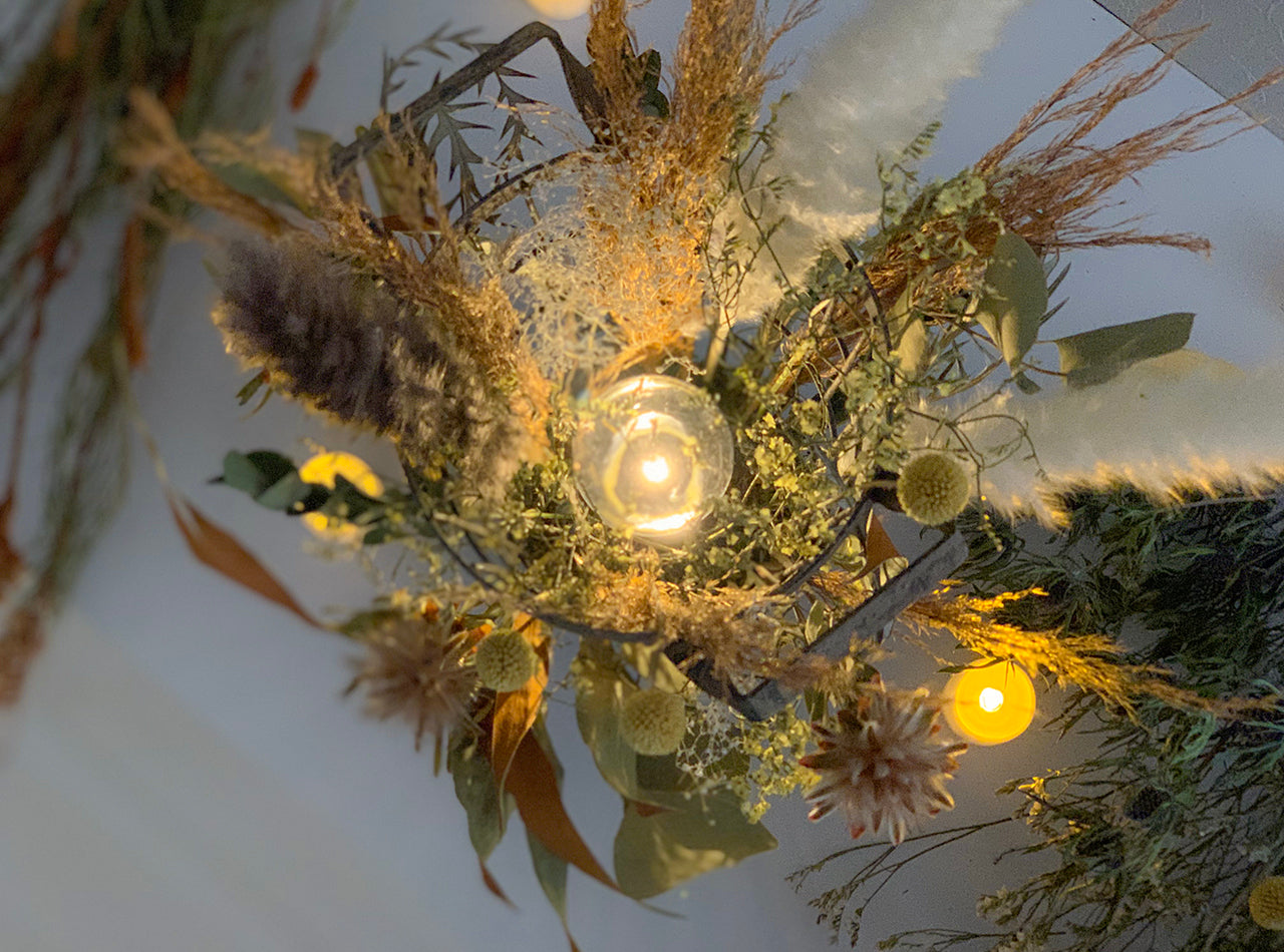 ドライフラワーのランプがお部屋を華やかに彩り、