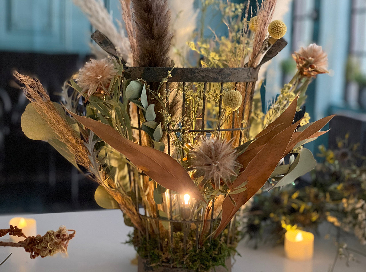 (予約販売)【インテリア】アンティーク・フラワーランプ・カゴタイプ★ドライフラワー