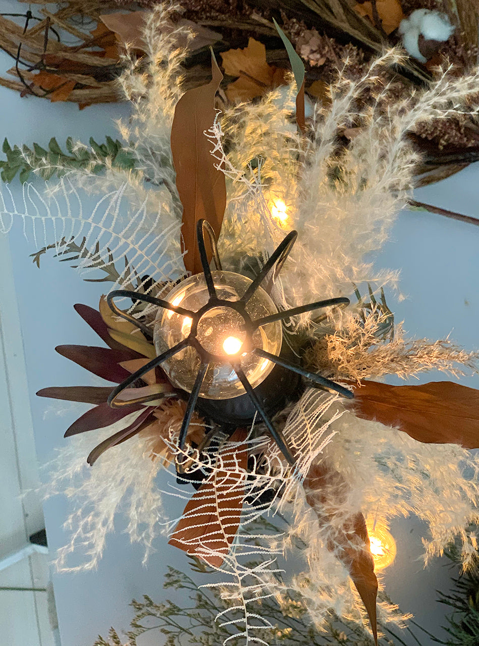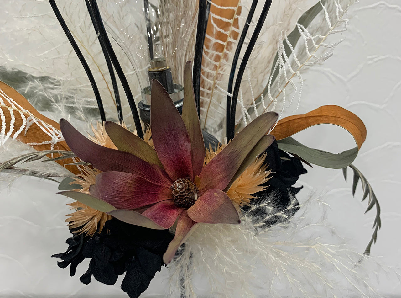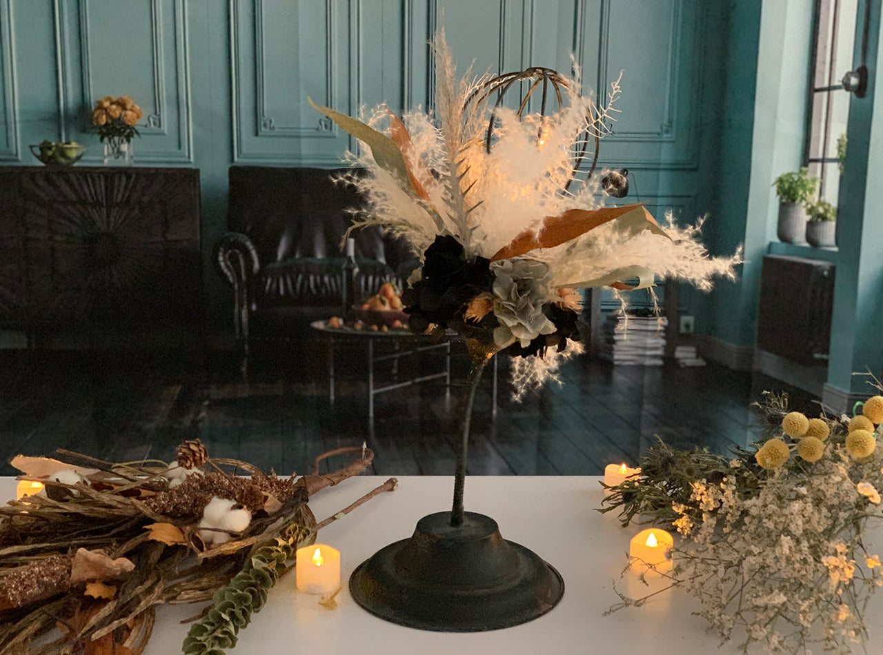 ドライフラワーのランプがお部屋を華やかに彩り、