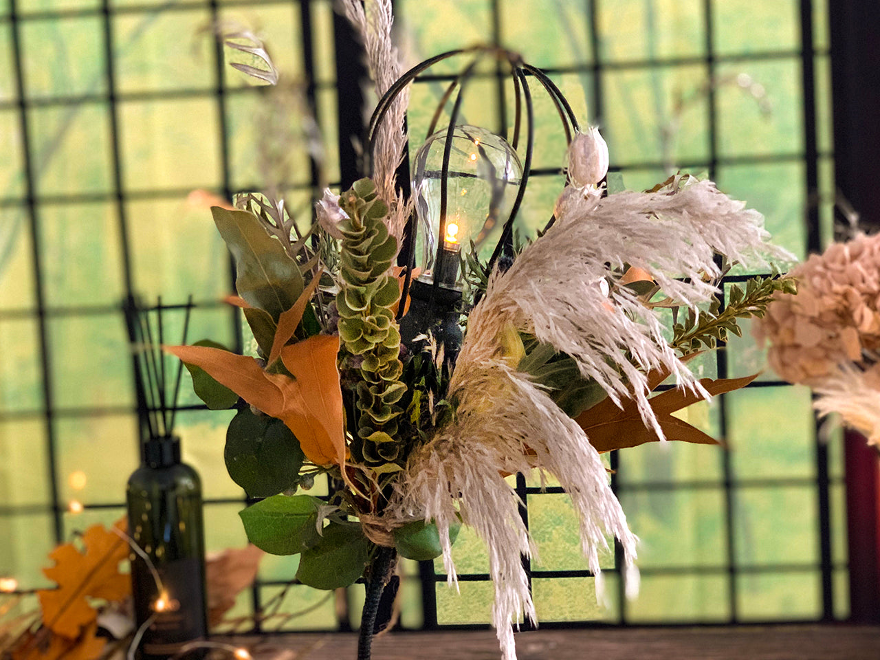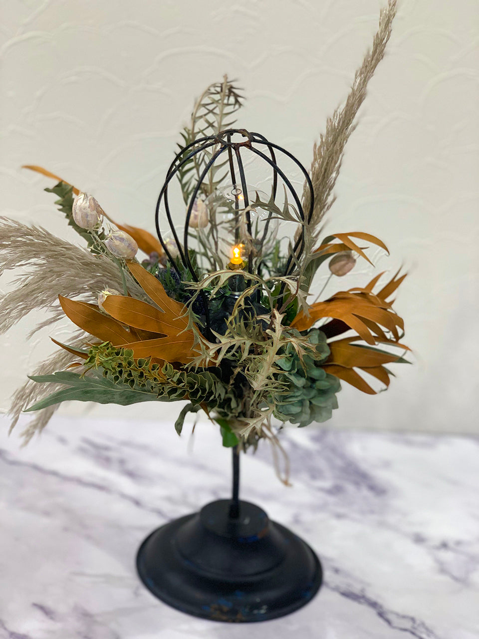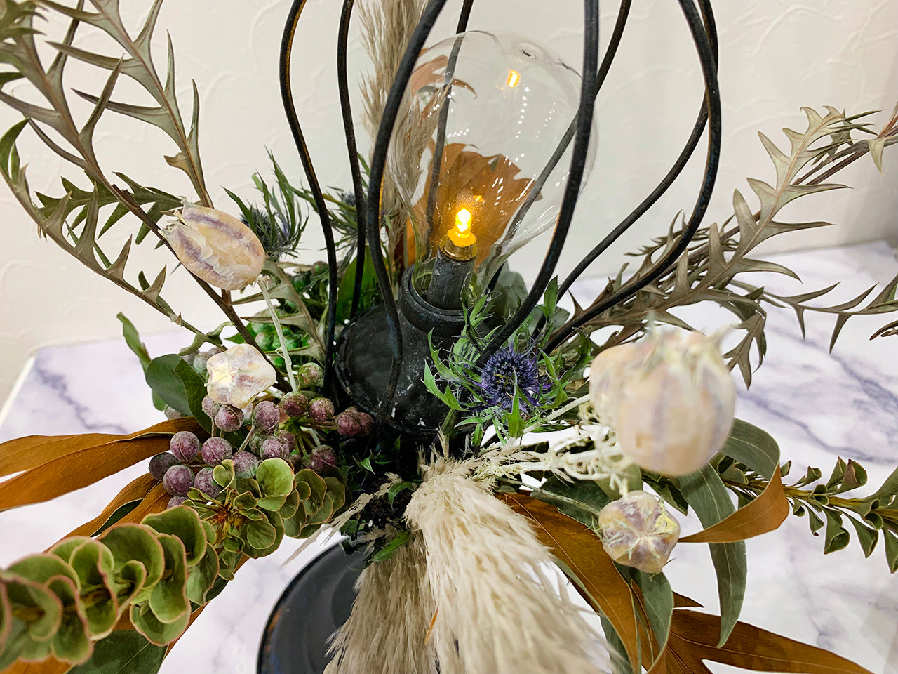 (予約販売)【インテリア】アンティーク・フラワーランプ・スタンド★〈ドライフラワー&アーティフィシャルフラワー/ワイルド〉