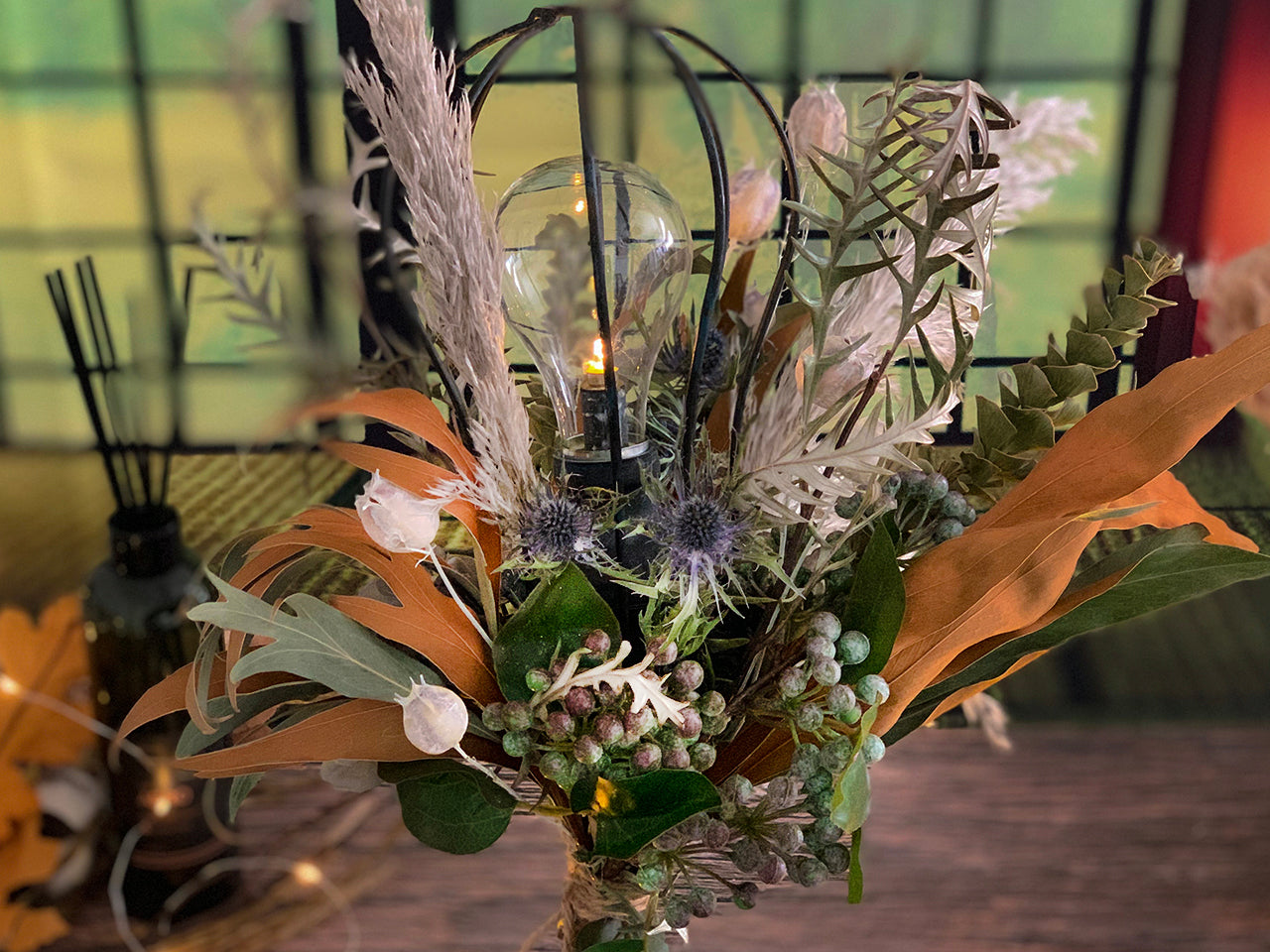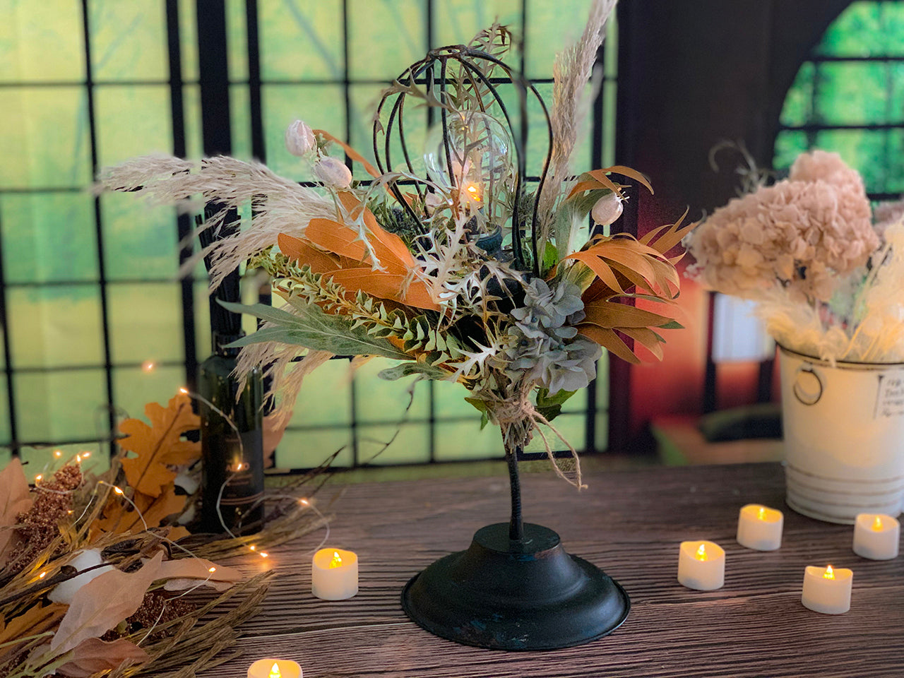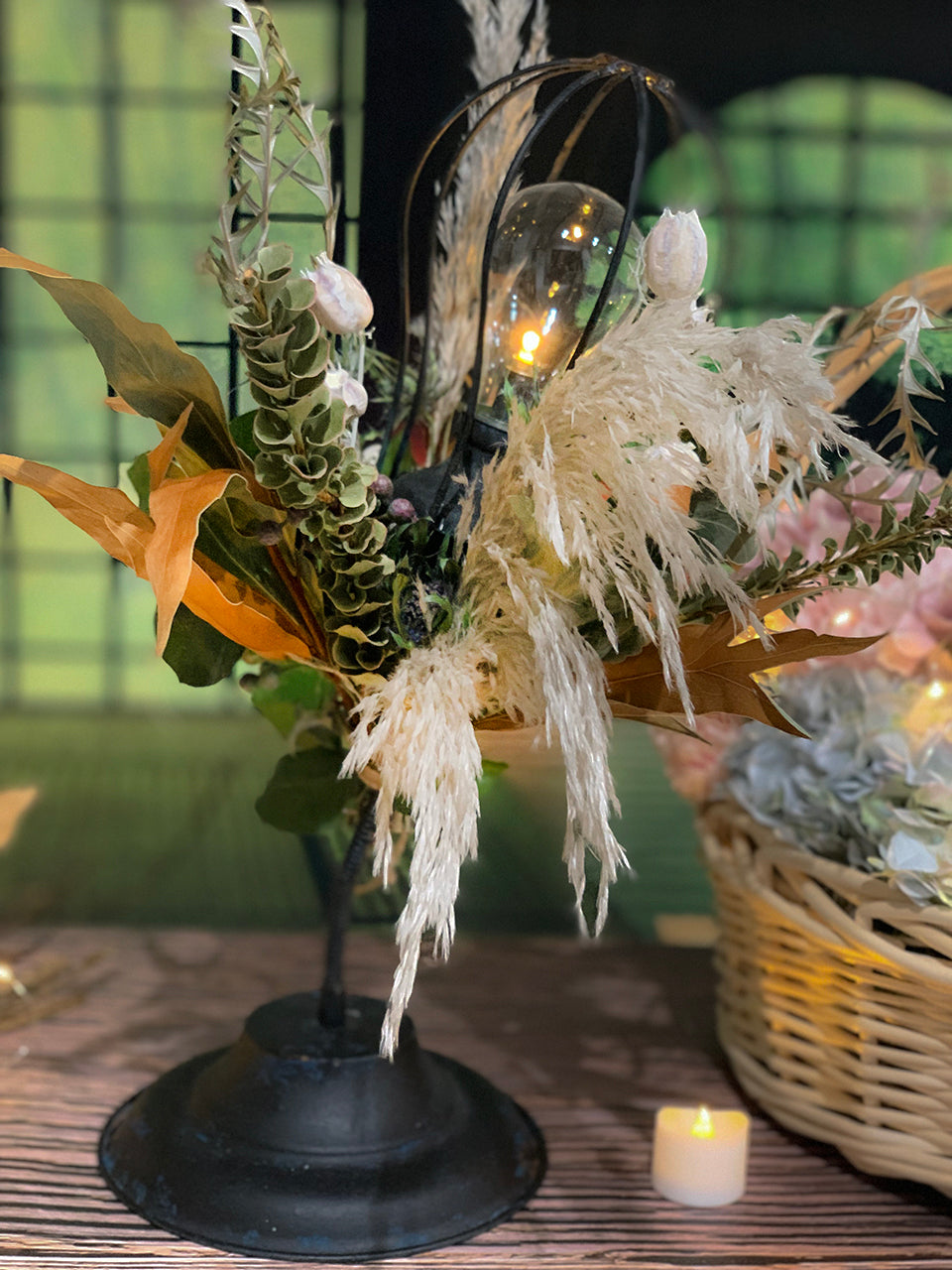 (予約販売)【インテリア】アンティーク・フラワーランプ・スタンド★〈ドライフラワー&アーティフィシャルフラワー/ワイルド〉