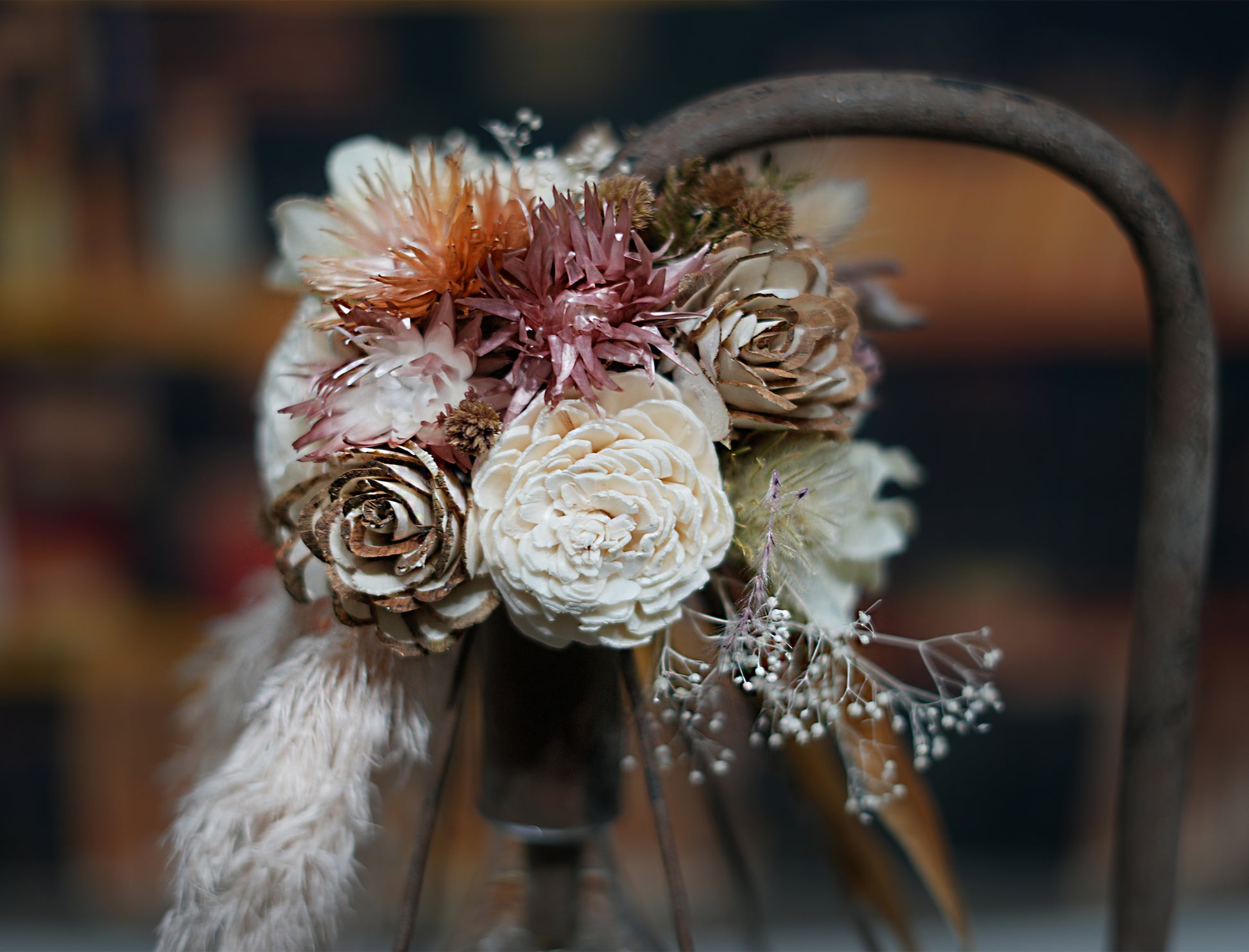 フェザーパンパス、シルバーデイジー、かすみ、グレビリアゴールド、その他ドライフラワー、