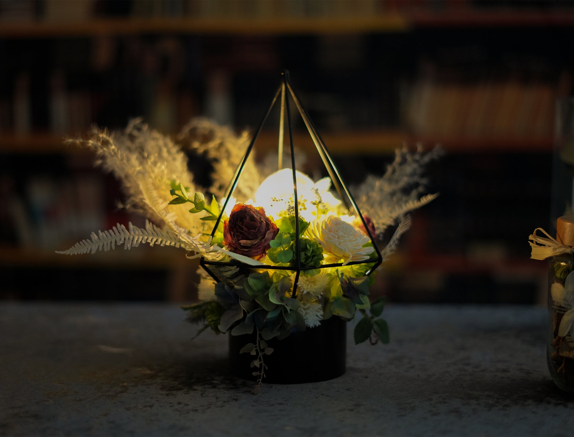 インテリア照明、フラワーギフト、お花のインテリア、ランプ
