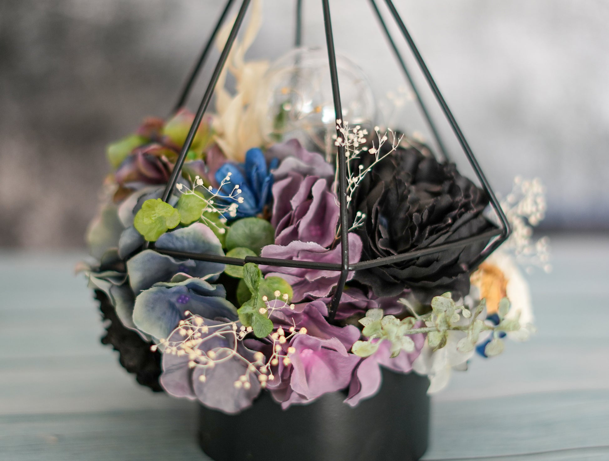 アーティフィシャル:黒薔薇、紫陽花、葉物など