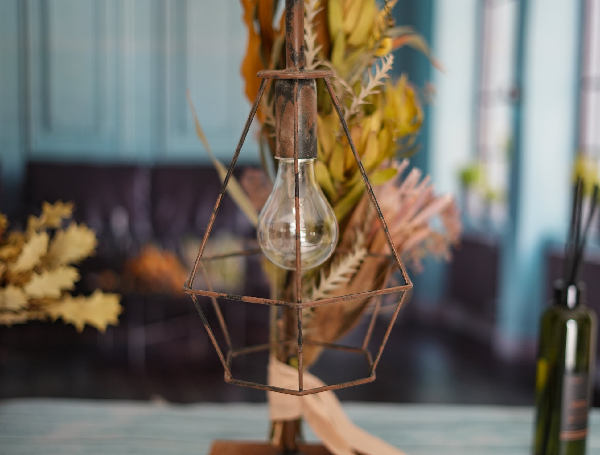 ドライフラワーのランプがお部屋を華やかに彩り、