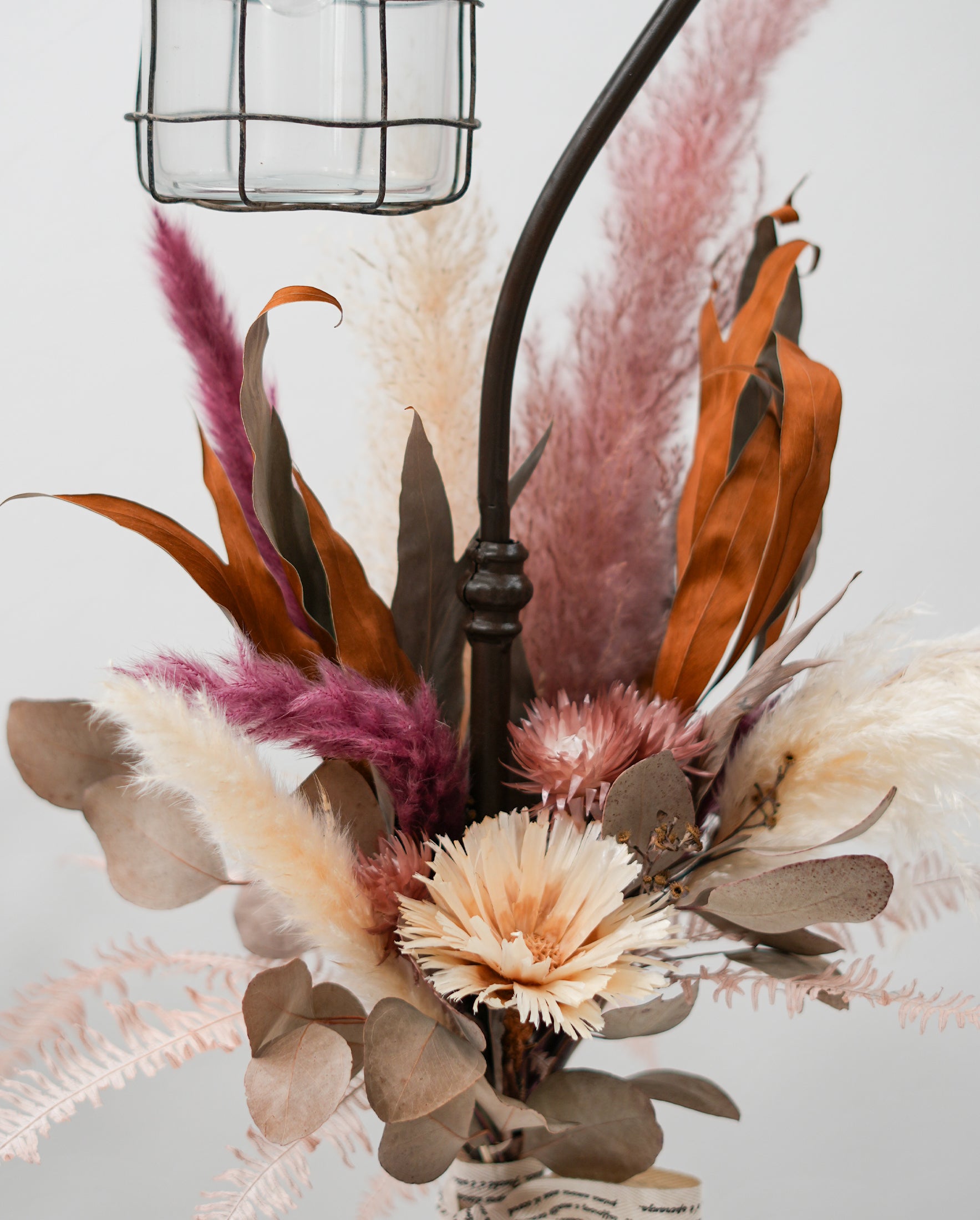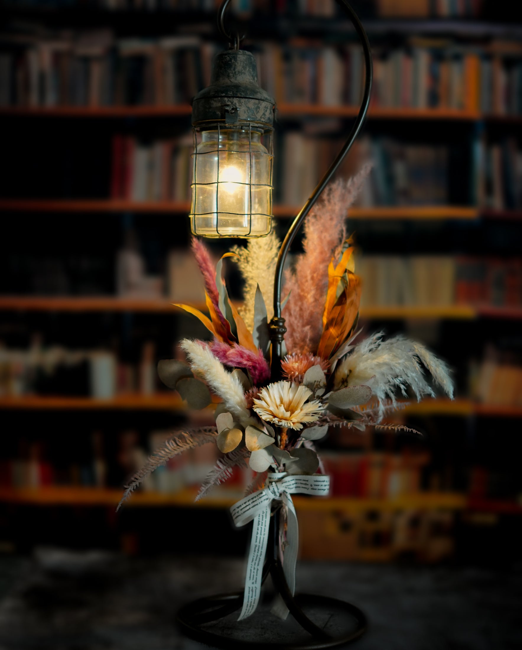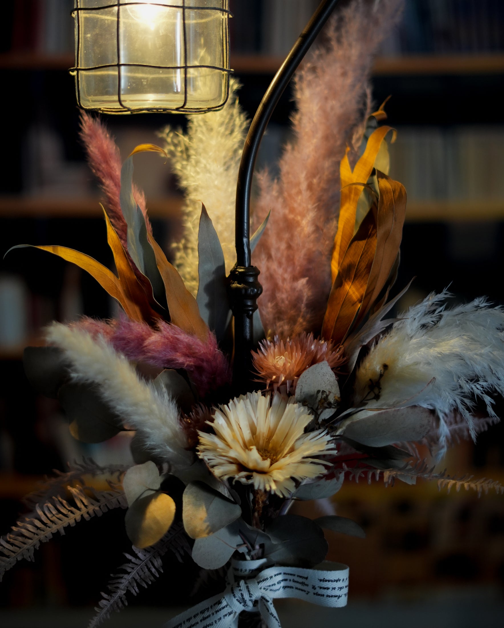 ドライフラワーのランプがお部屋を華やかに彩り、インテリアや間接照明、ライトスタンドとしてご使用いただけます。
