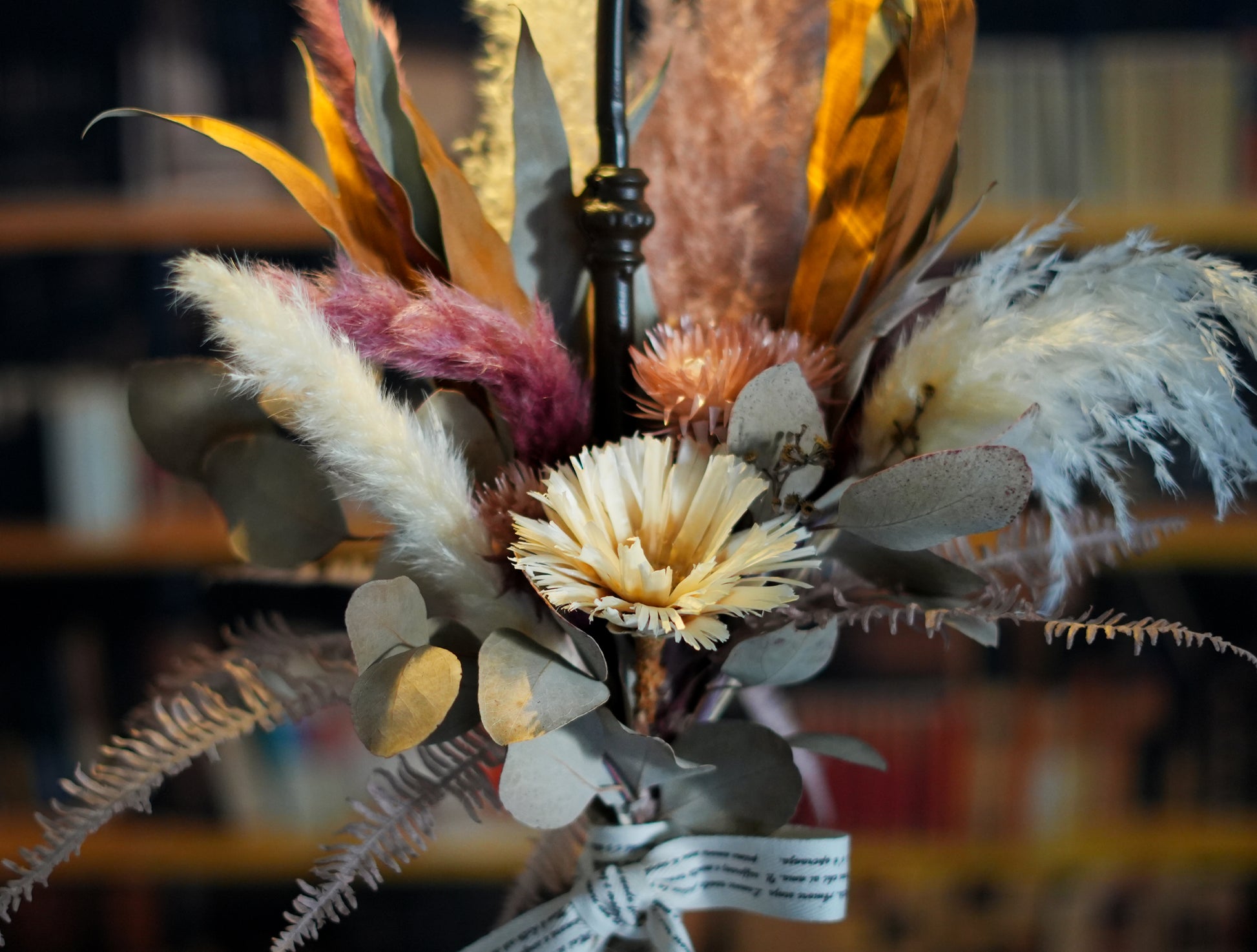 テールリード、パンパス、フェザーパンパス、グレビレアゴールド、ユーカリ、シダ、シルバーデイジー、ソラフラワー、その他